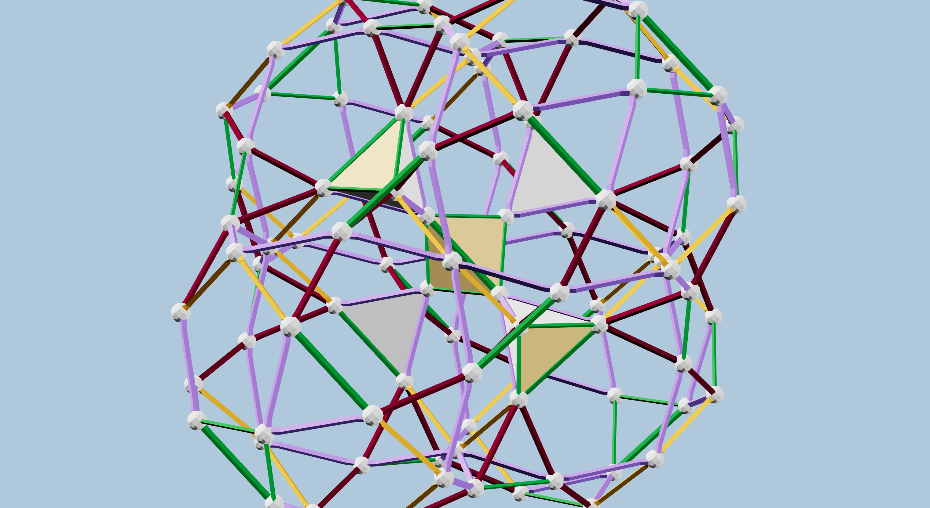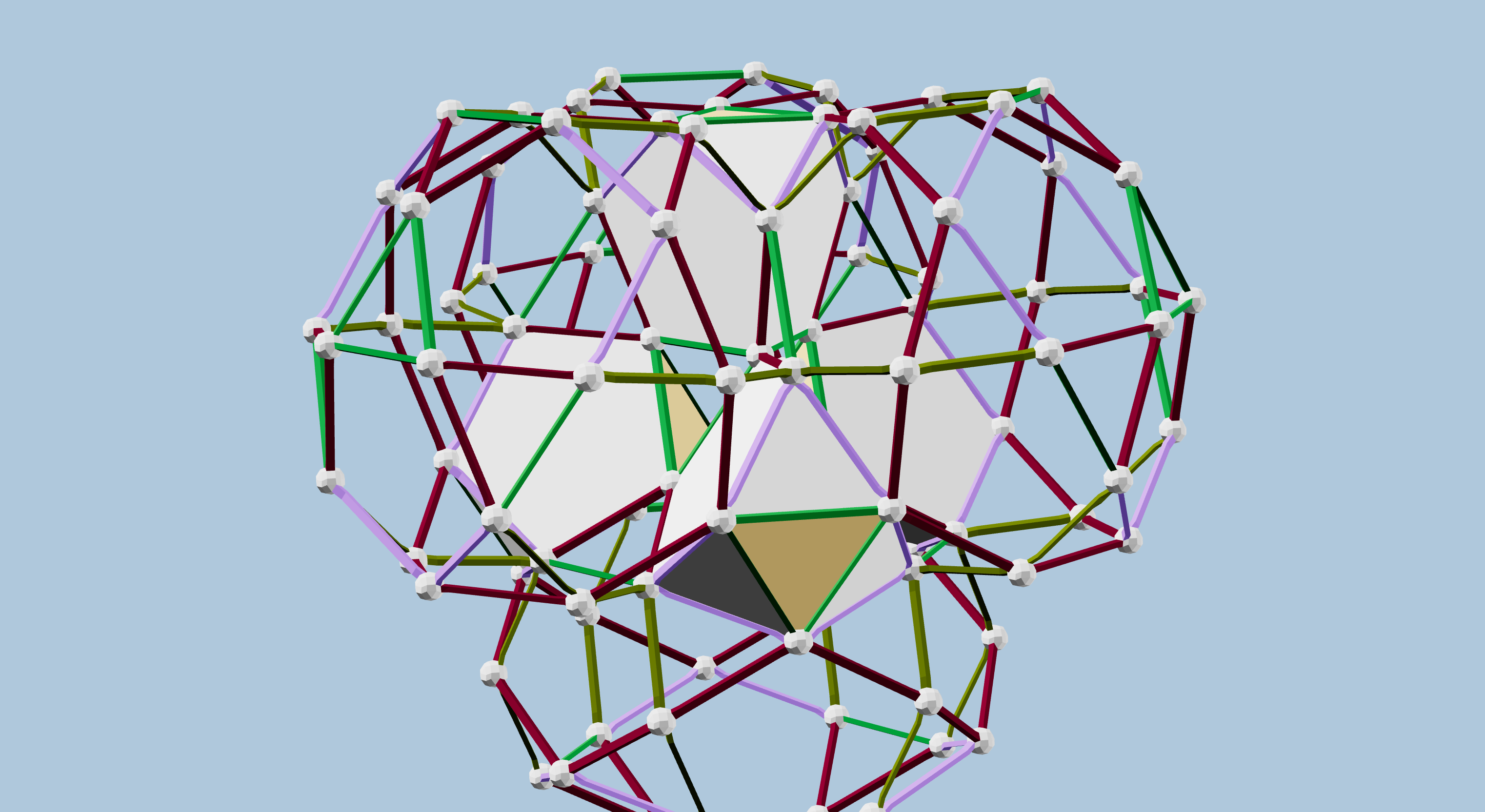 Jonathan Kirk is a young man who has been using Zometool and vZome since he was nine or ten years old. He has a lot of experience with building real and virtual models of 4D polytope projections. Last year, he put that experience to work in vZome to construct a previously unknown CRF polytope, as a 3D projection, just using his considerable intuition and exceptional visualization skills. Let that sink in: he used a 2D view of a 3D projection to intuit the configuration of a 4D polytope.